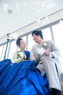 この日は午前中があいにくの雨。お二人も心配していましたが・・・撮影時には快晴に!!飛行機雲も綺麗に見えています☆