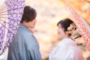 前撮りの際貸出している番傘を使った1枚!和装姿によく合いますね♬