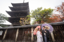 八坂庚申堂を出ると目の前に五重の塔!お二人仲睦まじい姿を収めたショット