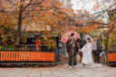 八坂の塔から離れていく帰り道。塔を見つめるお二人を撮影しました