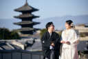 白無垢と紋付袴にお支度させていただき、八坂の塔付近付近へとやって参りました!