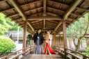 毘沙門堂では中でも外でも撮影が楽しめます。着物の裾をおろしても撮影が可能