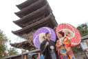 綺麗な紅葉を背景に、お二人振り返りながらの撮影です!周辺には京都らしい建造物も多々あり風情ある撮影が可能です!