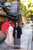 ゆったりと京のまちを歩くお二人、お二人の間にゆっくりと時間が流れていきます。