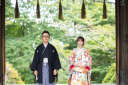 まるで天気もおふたりを祝福しているかのような晴天!青空や木々の緑がおふたりの和装姿をより引き立ててくれてますね。