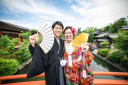 和装前撮りの定番アイテムの番傘は、和の雰囲気をグッと高めてくれます。おふたりとも傘を持つ姿が様になっていて素敵ですね。