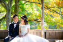 秋色がかった庭園を見つめて寄り添うお二人・・・雰囲気あるショットもしっかり撮影させていただきます。