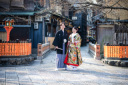 京都ロケの定番の八坂付近は、寒い冬の日でも京都らしい街並みで素敵なお写真が仕上がります♩