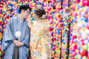 華やかで縁起の良い虎の金屛風の前で1枚。後ろ姿がさりげなくて可愛らしい!