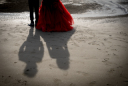 海へ移動してきました!またお二人のお衣装と海がマッチしています♪