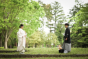 常緑樹をバックに爽やかな1枚を♪優しげな雰囲気が素敵なカットに。