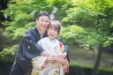 市内の公園で撮影♪新緑が鮮やかでお着物の色も映えますね。