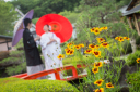オシャレで可愛いお庭での撮影でした。ポーズや小物など何も決めていなかったのですが、カメラマンさんがご指示して下さりスムーズに撮影出来ました!美容スタッフさんが優しく丁寧でお話もすごく楽しかったです。暑さが心配でしたが、しっかり水分補給や塩分補給の時間をとってくださり安心して撮影に取り組めました。華雅苑さんにしてよかったです!!