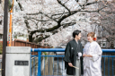 春の青空をバックに、多摩川の河川敷で桜とのロケーションフォト*