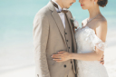 ビーチへ移動して撮影!青い海と空に純白のウェディングドレスが映えます♪