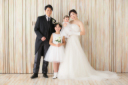 和装での撮影といったら大人気のポーズ!正座での1枚!お客様が持ち込んでくださった”結婚しました”の扇子が、お客様の素敵な笑顔とともに光っていますね!