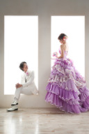 らかんスタジオは新郎新婦一人ずつの撮影もご提案しております。トレーンの長いドレスは上から撮影するととても優雅に写り素敵です!