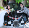 ガレージのFIATとスタジオの入り口付近がいい感じに♪自然と笑顔になる二人♡