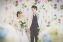 チャペル内にあるフラワーウォールでも撮りました!今更ですが、お2人の身長差にもきゅんとします♡(笑)