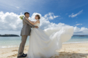 ビーチ撮影の最後はリクエストいただいた、ブーケでお顔隠し♡これからもおふたり仲よくラブラブでいてください♡