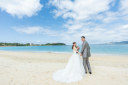 ウエディングドレスと白タキシードは沖縄のビーチ撮影にぴったり♥白とブルーのコントラストがよく映えます♥♥