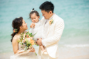 試着の時から一目ぼれしたドレス♪トレーンが長く、綺麗なビーチに映えて大満足なおふたりでした!