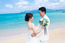チャペルでは想い出のくつでの撮影で、もう一度新婦様に贈って頂きましたが、ビーチではせっかくなのでブーケでプロポーズをしているようなお写真を撮影しました!