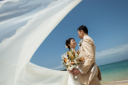 チャペル撮影の後はビーチへ移動!沖縄らしい綺麗なロケーションにお二人も喜んでくれました。