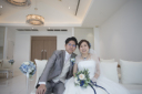 美しい海を臨む白亜のチャペルで、おふたりきりの結婚式。うっすらと涙を浮かべるシーンもあり、とても素敵なご結婚式となりました。