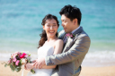チャペル撮影のあとはビーチへ。ウエディングフォトと言えば、な一枚。