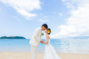 沖縄らしい青い海と空をバックにダイナミックな一枚♡