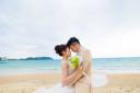 沖縄らしい青い海と空。白い衣装はビーチ撮影とも相性バッチリ!