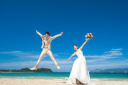 チャペル撮影を終えると、ビーチへGO!!!沖縄の青い海を背景に楽しく撮影を行います。