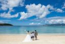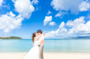 青い海と、綺麗な海、グリーンも一緒に写したロケーションをいかしたお写真です。