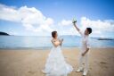 チャペル内撮影のあとはビーチへ♪おふたりでぎゅっとハグ♡♡可愛いです^^