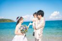 こちらは、ロケーションを際立せた全体のお写真です♡青い海に青い空だと真っ白なドレスがより豪華に!!