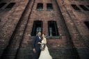 海に向かって続く橋を歩くおふたり♡珍しい木製の橋とオレンジの空が優しい雰囲気に