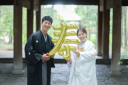 和傘を使ってかっこよく!とっても素敵な1枚です!グリーンに打掛が映えますね!