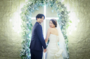 花柄の壁を背景でのお写真もお撮りいたしました!素敵なお写真を沢山お写しさせていただき、本当にありがとうございました!末永くお幸せに♪