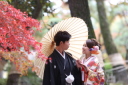 白無垢に赤色の5点セットの入れて華やかな印象に★和傘の赤も映えてます★
