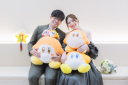 ぎゅーと寄り添ってお持込のハートバルーンでお顔隠し*