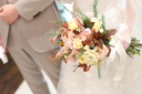 桜を前に、おふたりの向かい合ったお写真です*おでこをこつんと合わせたお写真も素敵です♪