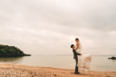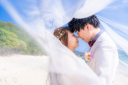 広いビーチをふたり占め♡見つめあうおふたり絵になっています。