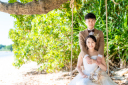岩の上で背中合わせのおふたり。落ち着いた雰囲気もお似合いです。