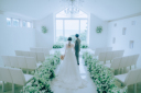 水面ギリギリを攻めたショット。水が動いているようです。ウェディング衣装を着ながら海に入れるプランは思い出に残ること間違いなし。思う存分撮影を満喫しちゃおう!