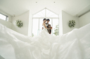 高い高〜い!お二人とカメラマンとで息を合わせて・・・日常してもらえない演出をこんな時は新郎さんにたくさん甘えちゃおう!息ぴったりで素敵な1枚に仕上がりました。