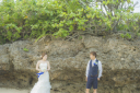 海の中でもお散歩ショット^^!ドレスはとても歩きにくいので新郎さんにお手伝いしてもらって♪
