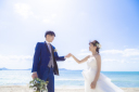 ご新郎様がご新婦様の手を引いてエスコートしながら海辺散歩^^♪