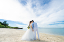 ご新郎様からのハグにニッコリスマイルのご新婦様!ビーチの青さと相まって幸せそうな雰囲気が画面越しからひしひしと伝わってきます!