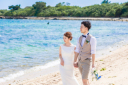グリーンからブルーへと場所を移して。舞うドレスとエメラルドグリーンの海が南国ならではのフォトウエディングらしさを際立たせていますね。